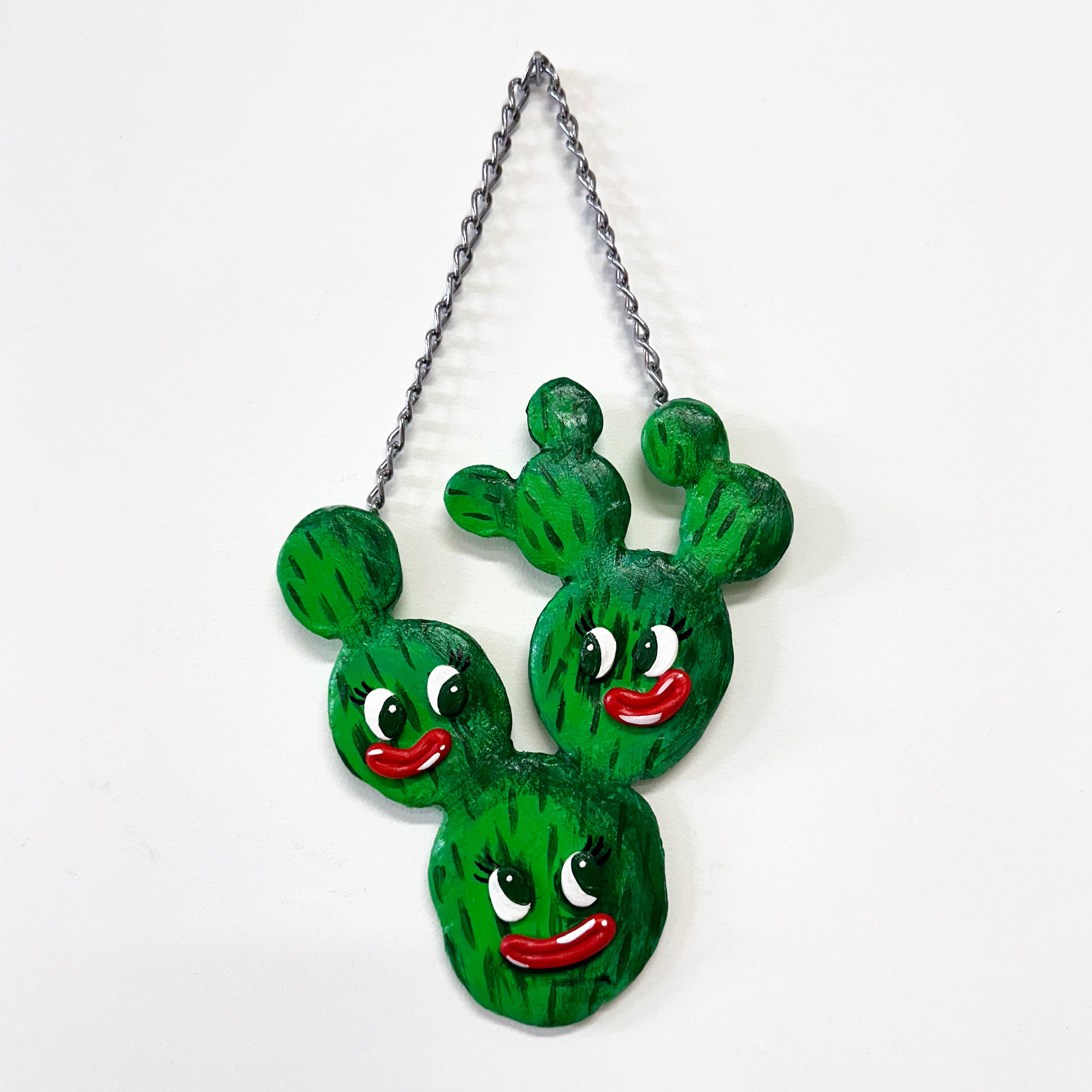 This isn’t your average desert décor — this is a hand-sculpted, wide-eyed cactus just trying to survive in a world that’s a little too much. With its cartoon face and permanent expression of mild panic, this little guy brings big “I’m fine!” energy to your shelf, desk, or windowsill.
