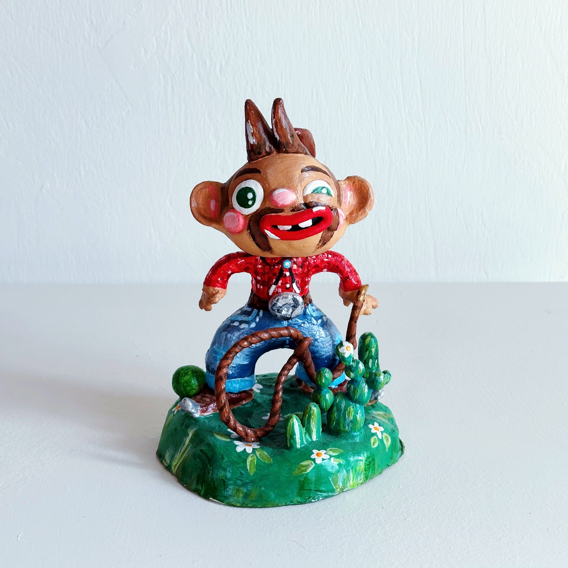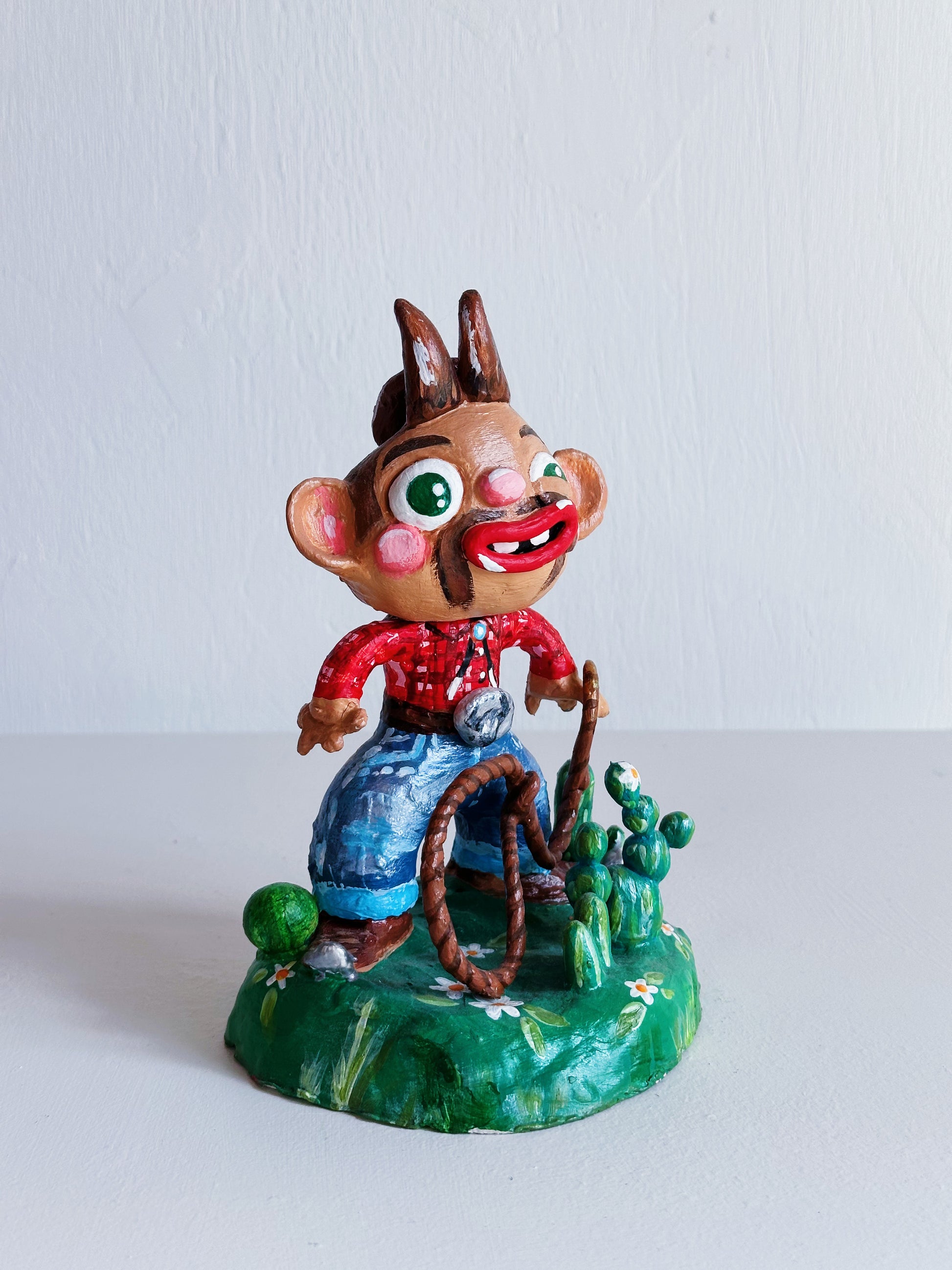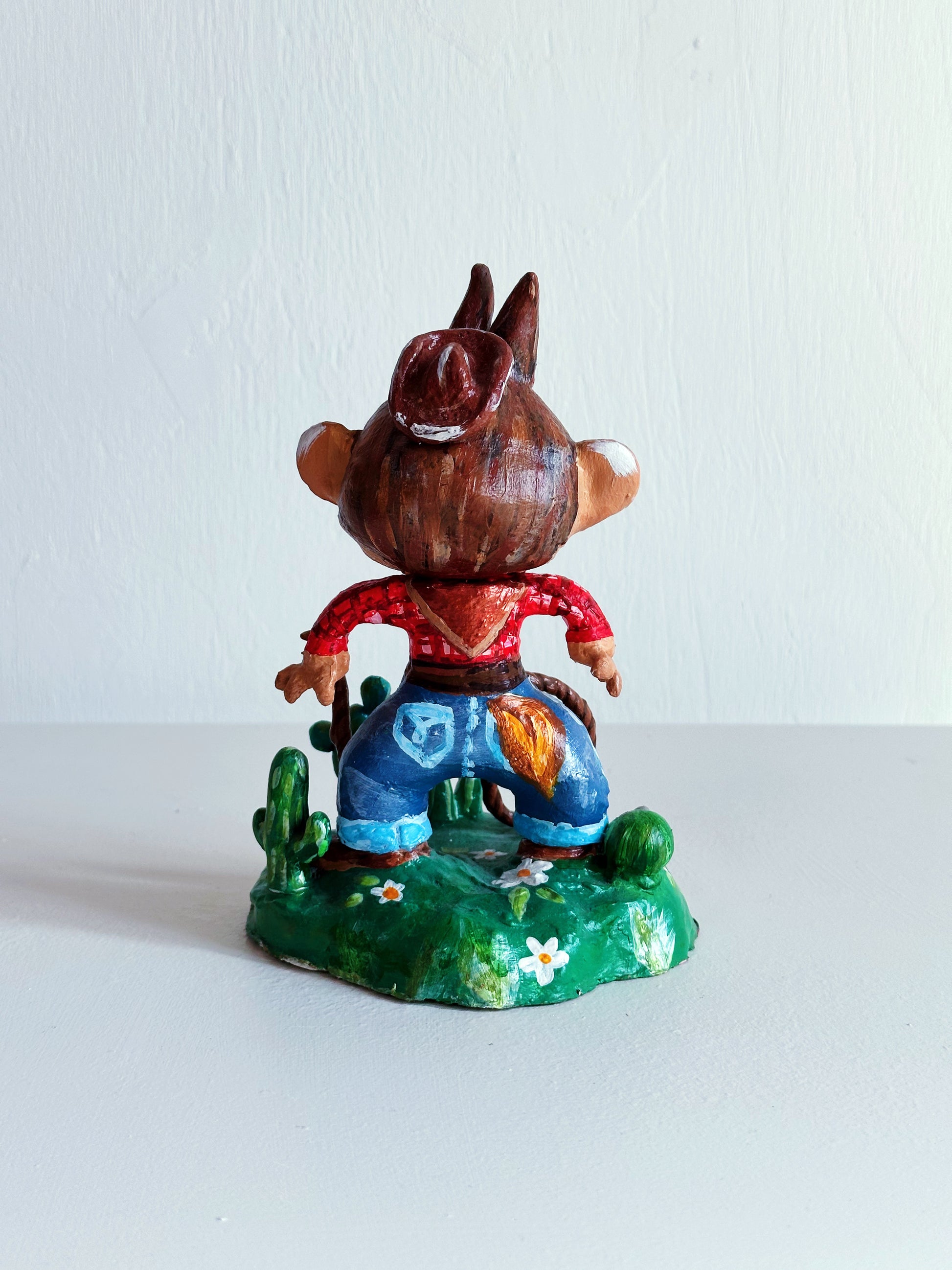 This pint-sized cowboy may be made of clay, but he’s got a heart full of tumbleweeds, a lasso full of charm, and boots that were made for yeein and hawin’.