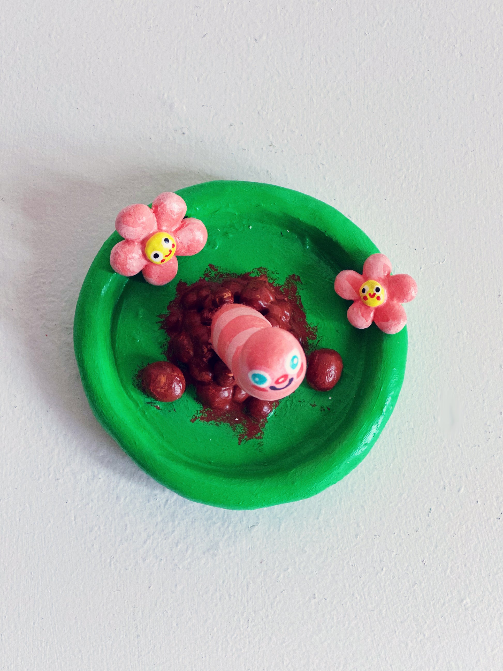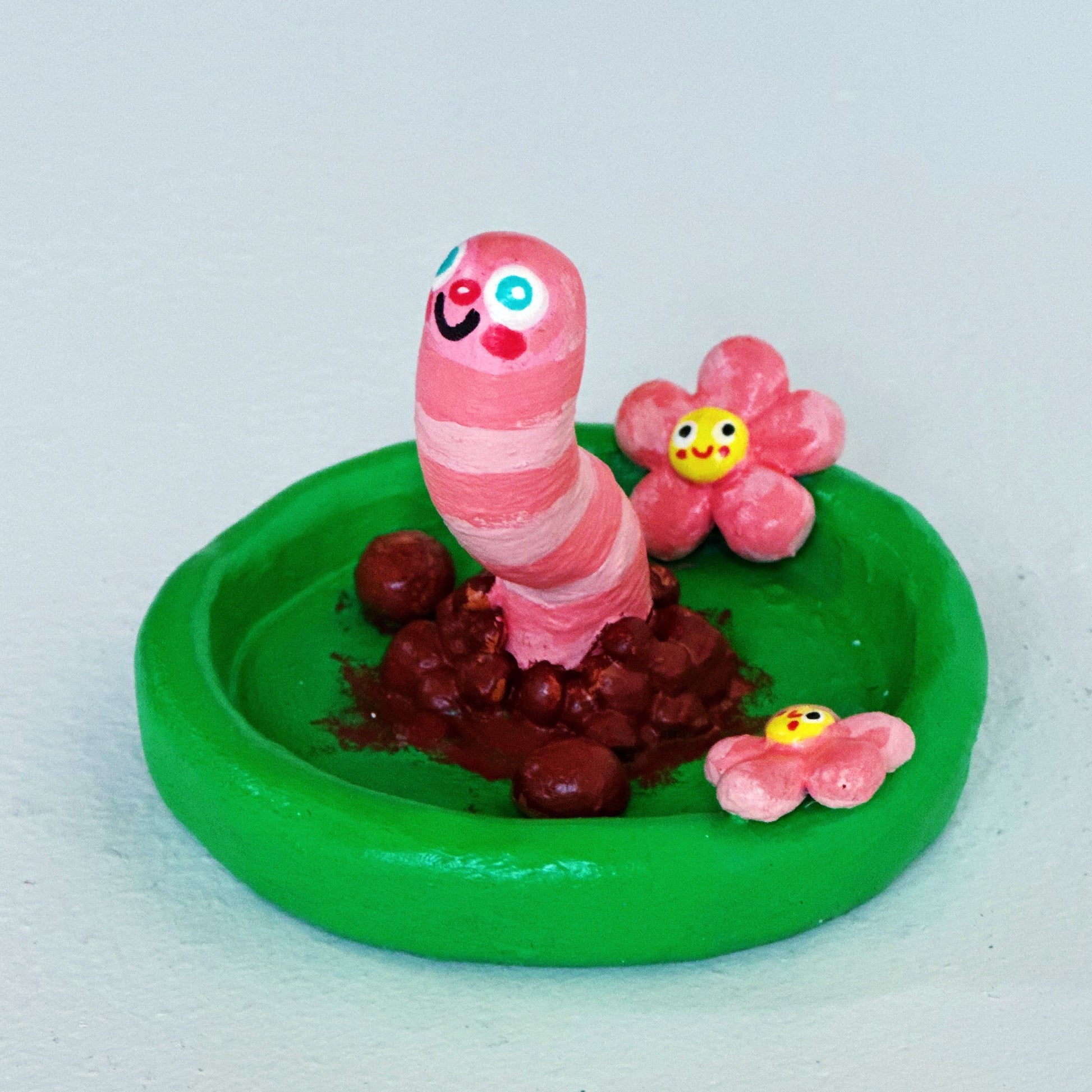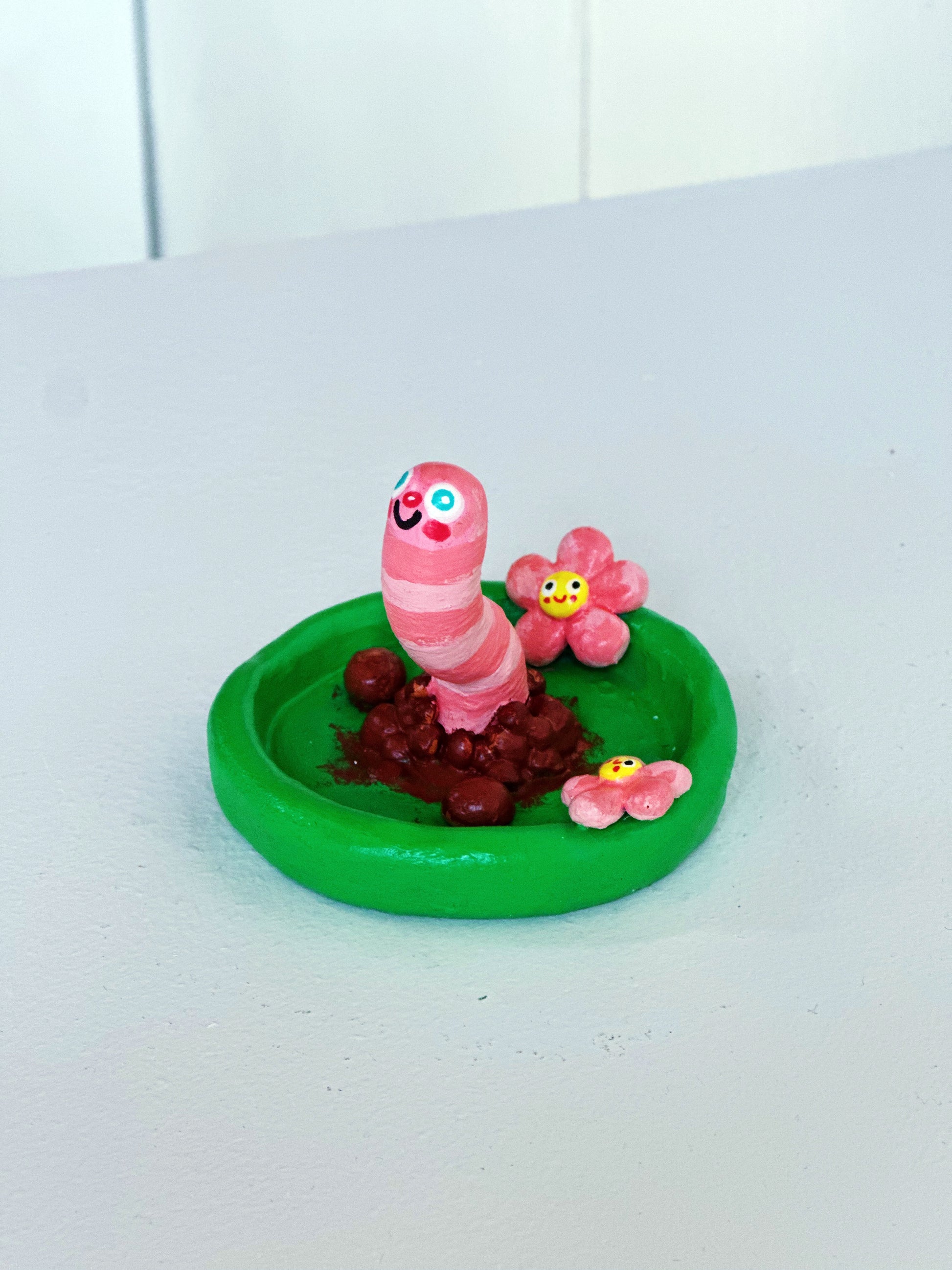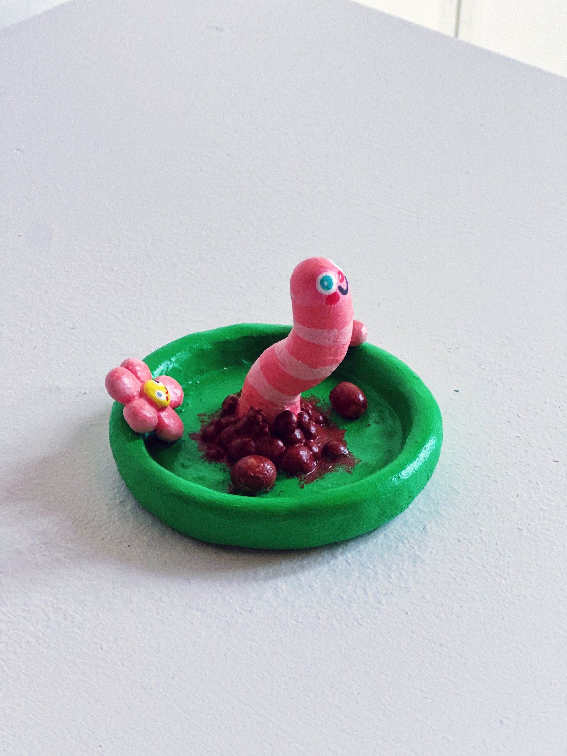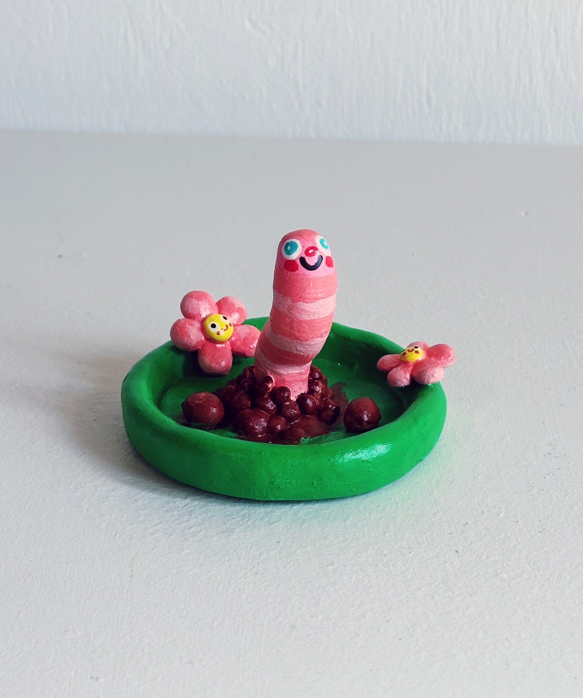 Hand-built from clay and sculpted with maximum wriggle energy, this worm isn’t just a trinket dish — it’s a small, wobbly friend who’s trying their best. Designed to hold your rings, earrings, or emotional baggage (lightweight only, please), this little guy is here to keep it together for you… even if they’re low-key spiralling.