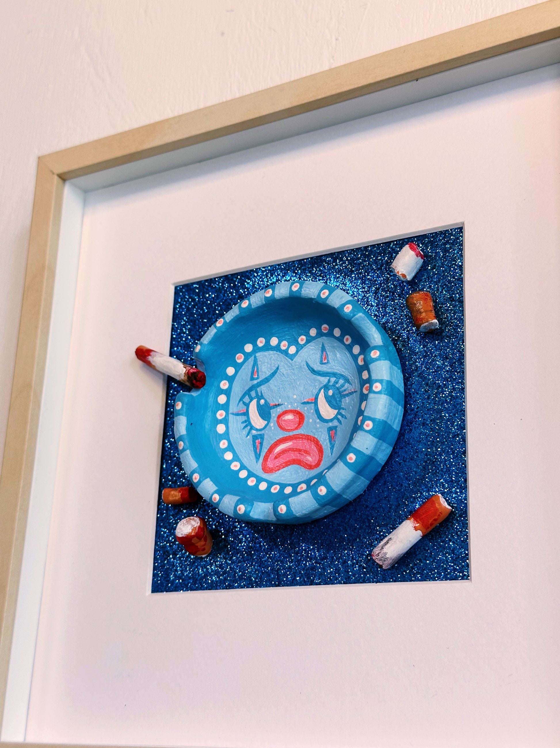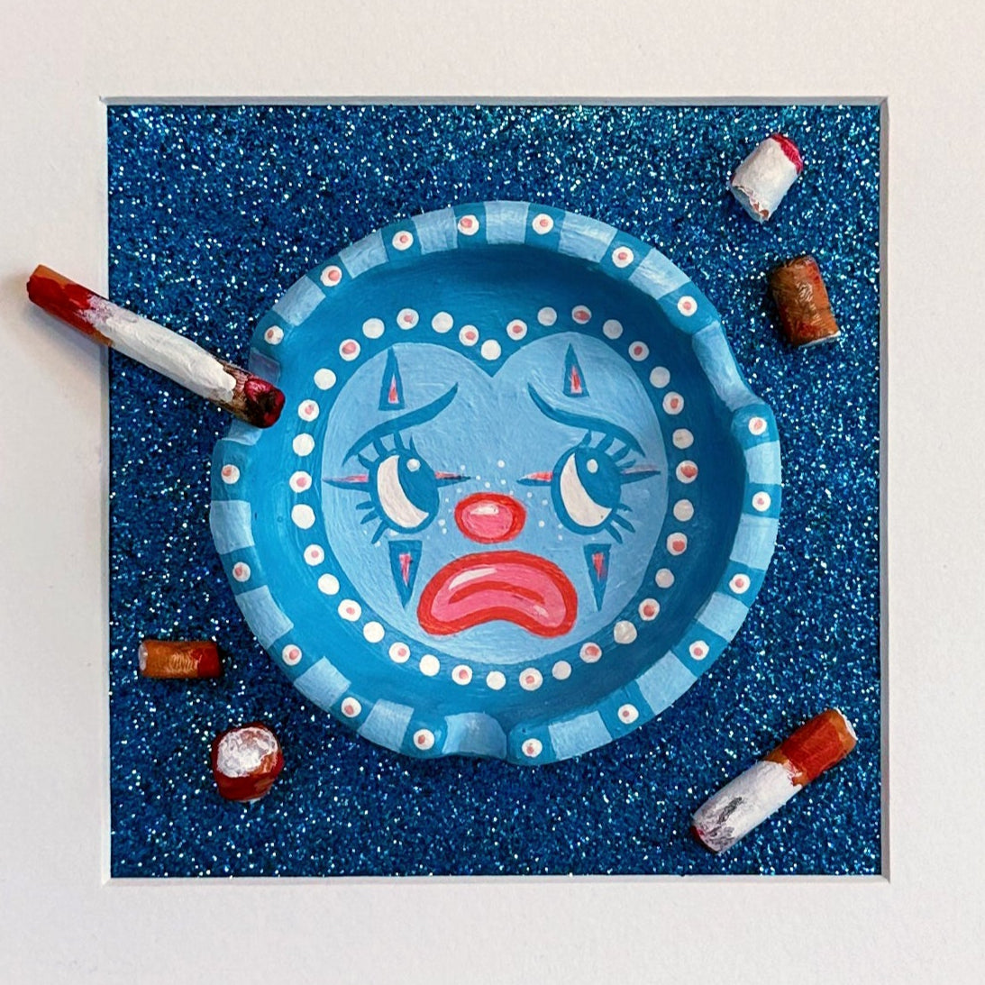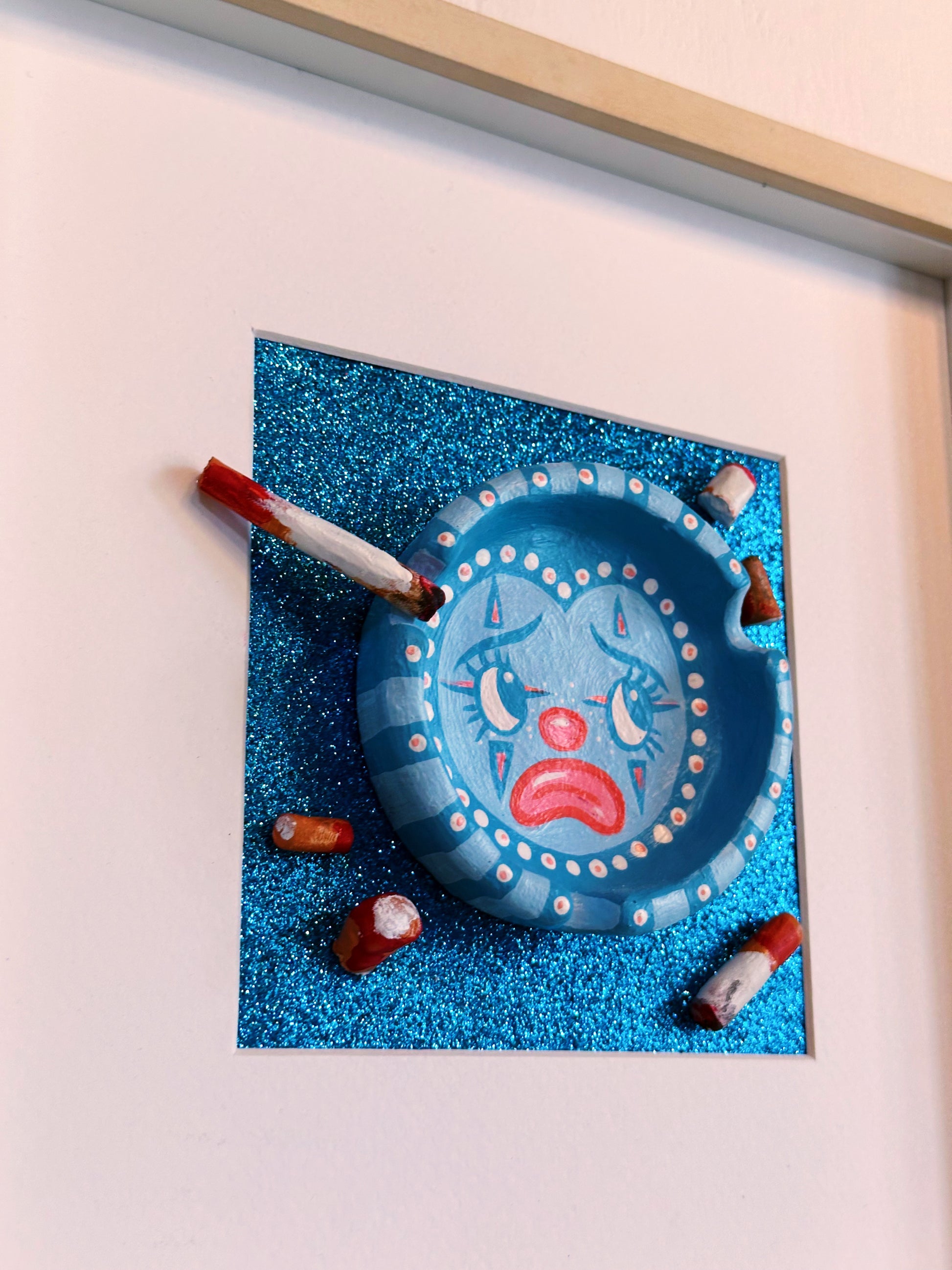 Bobo is the ringmaster of the meltdown — featuring layered textures, bold colours, and clown characters in the middle of an emotional trapeze act. For collectors who want something truly one-of-a-kind and beautifully off-balance.