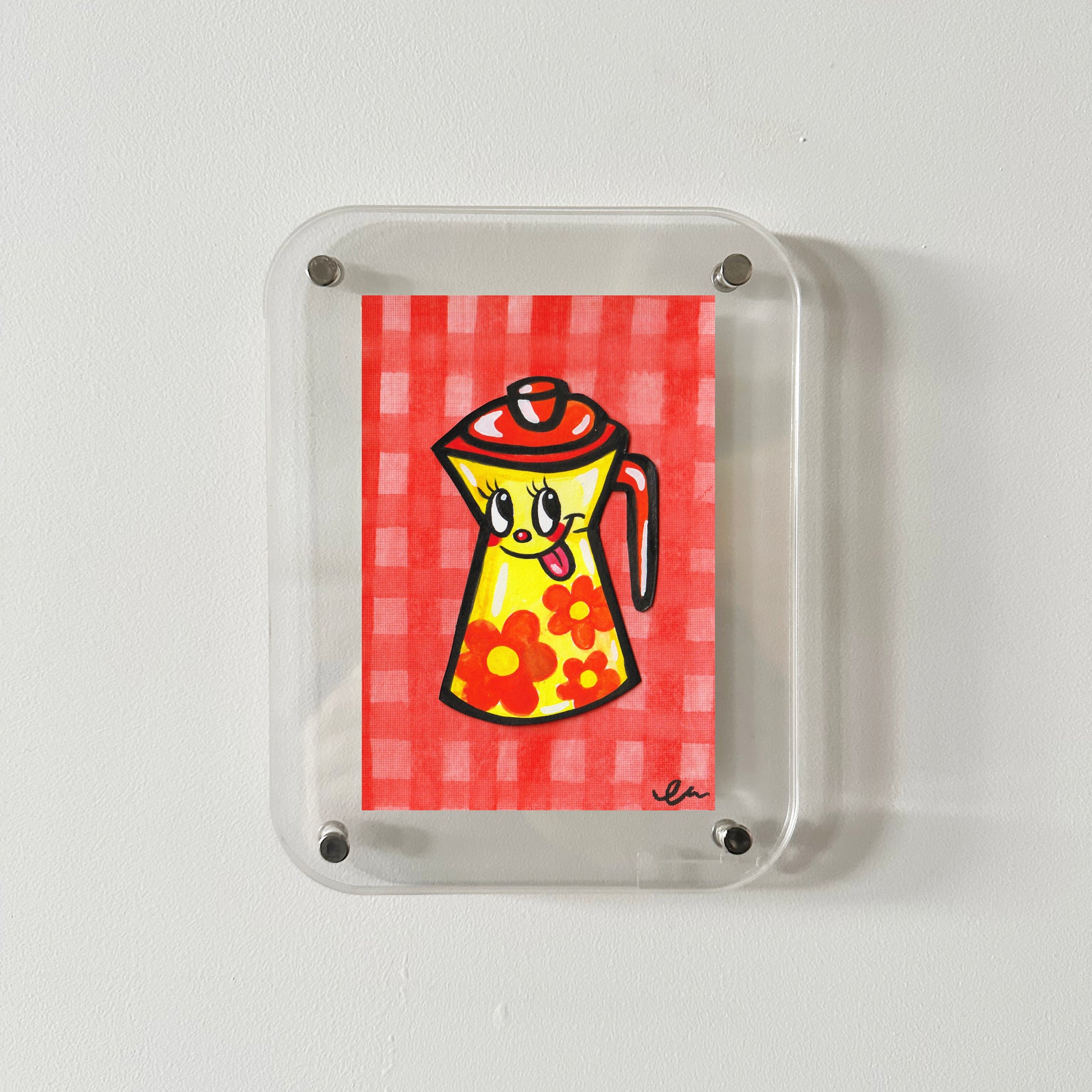 Steeped in sunshine and retro vibes, this yellow vintage kettle with a groovy ’60s daisy print is here to brighten up your brew time — and your day. Painted with warm, cheerful strokes, it’s a loving nod to kettle moments filled with flower power and endless tea parties.