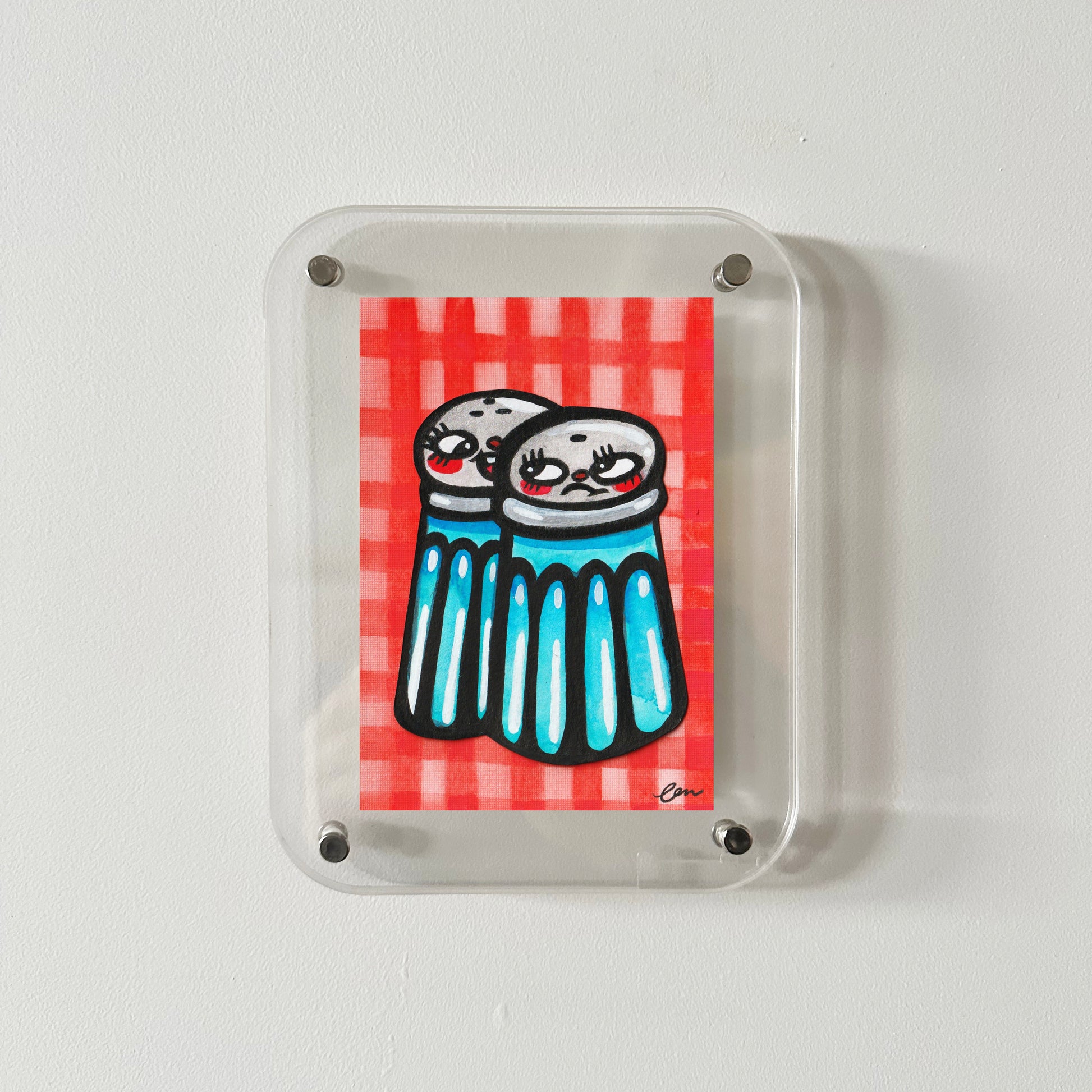 Meet the unsung heroes of every breakfast — salt and pepper, holding down the fort with a little dash of attitude. Painted with just the right sprinkle of charm, this piece celebrates those tiny shakers that bring the big flavor and keep mornings interesting.