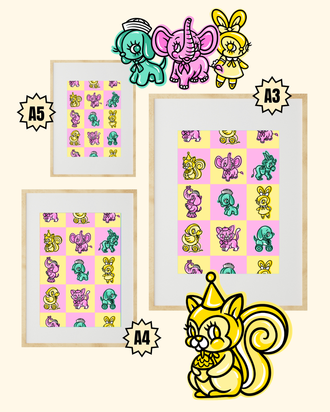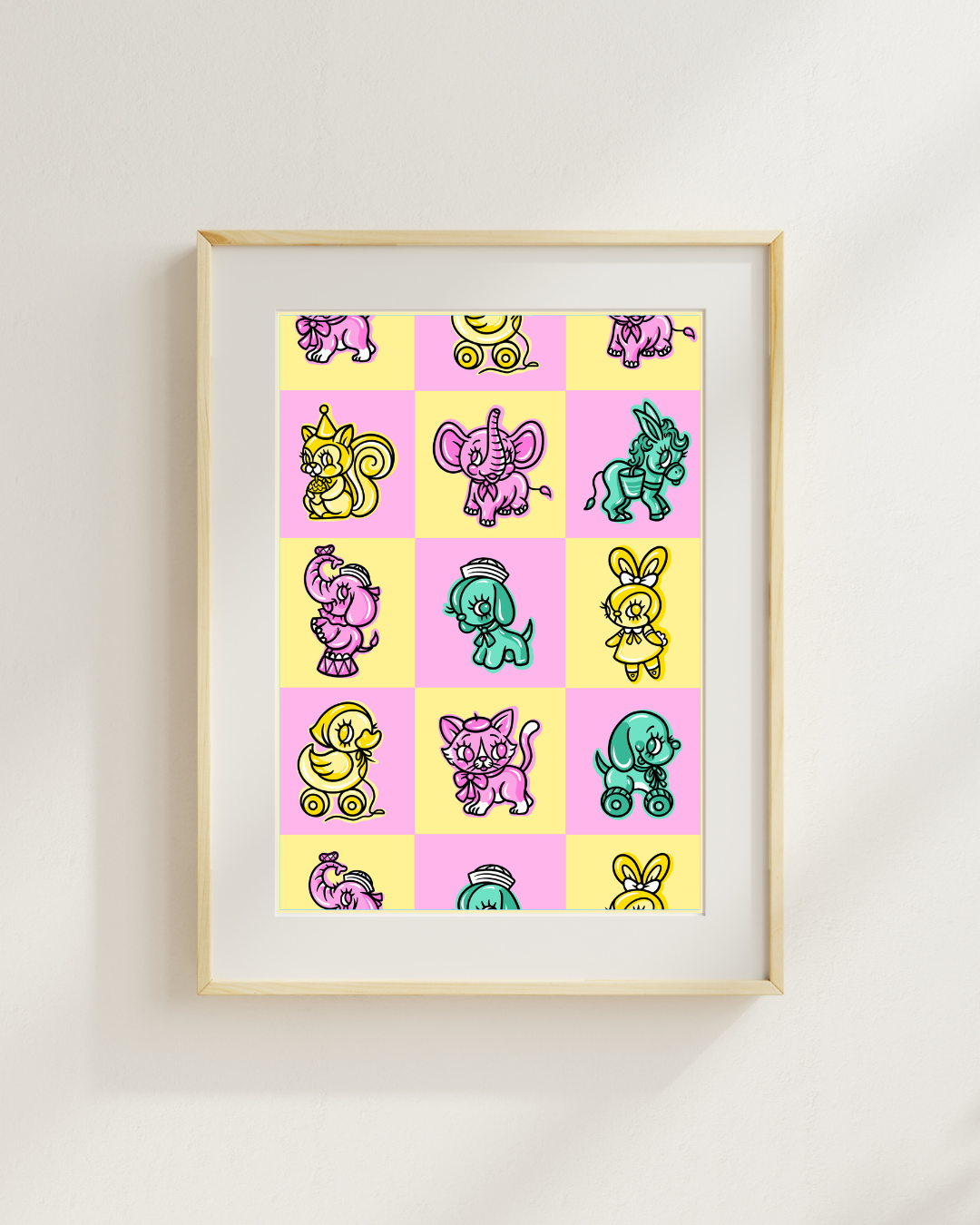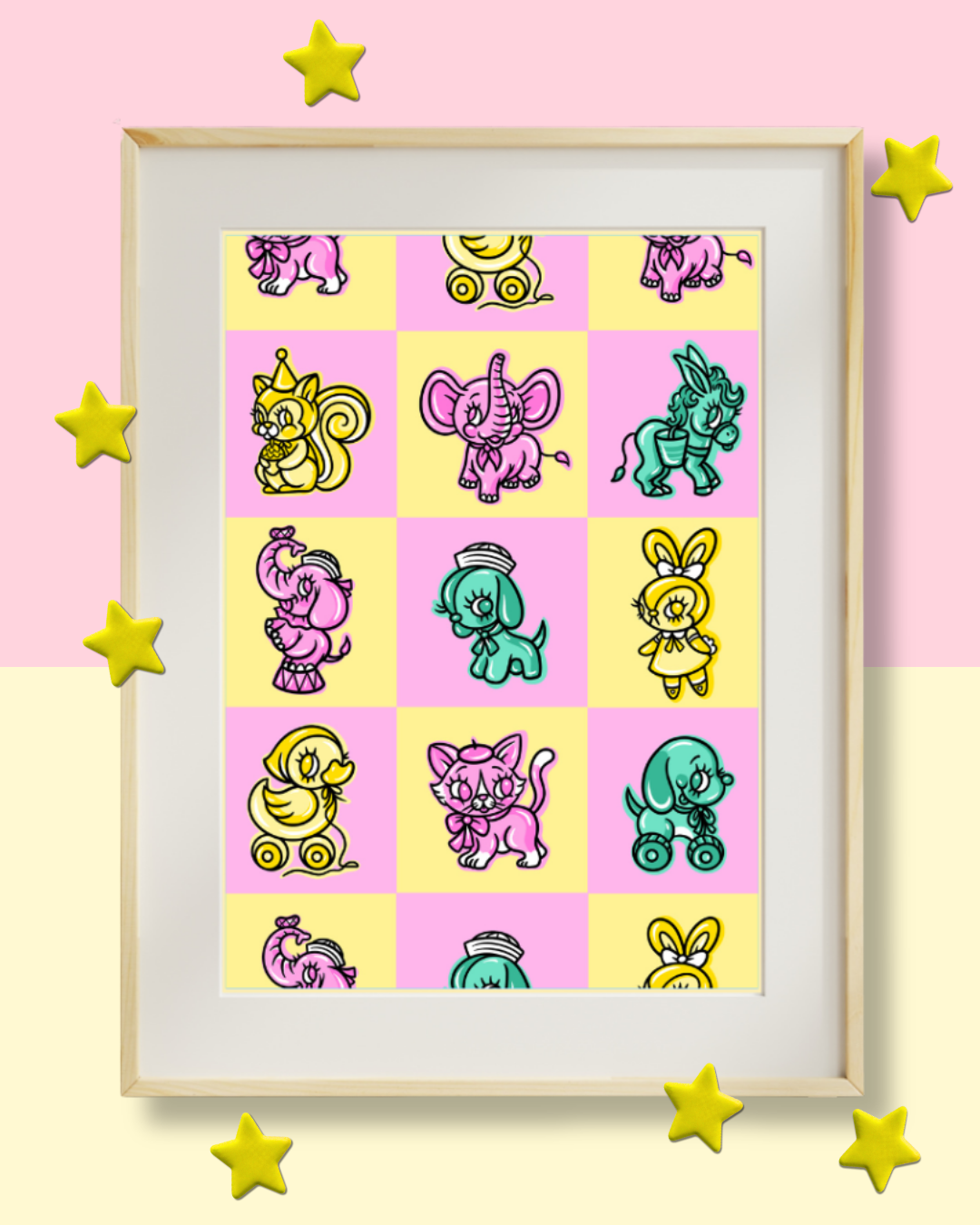 This print is basically me fan-girling over all the gloriously weird rubber toys from the 60s–80s. If you grew up loving weird little toys that smell like sweet rubber or just made you happy for no reason… this one’s for you. Perfect for anyone who loves a hit of nostalgia and a dash of pure, silly joy on their walls.